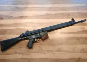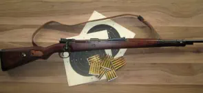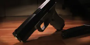 Schuss mit der 9mm Luger. Anschließend folgt ein